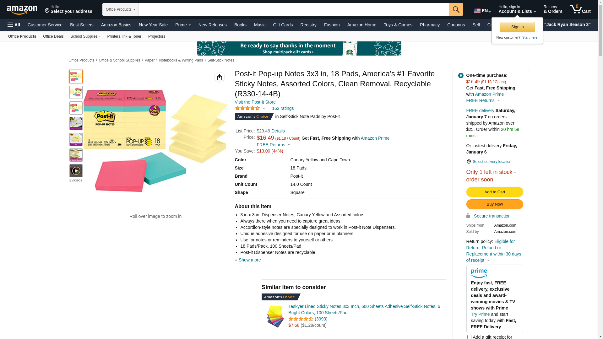 Buy 3m R330144B As low as $16.0 in bulk In stock Post-it Pop-up Notes Value Pack In Canary Yellow Plus 4 Free Neon Pads - 3" X 3" - Assorted - Paper - 18 / Pack