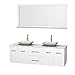 Wyndham Collection Centra 72 inch Double Bathroom Vanity in Matte White, White Carrera Marble Countertop, Avalon White Carrera Marble Sinks, and 70 inch Mirror