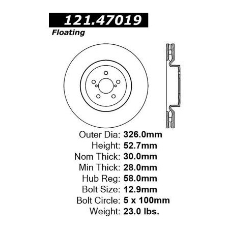 Centric Parts 121.47019 C-Tek Standard Brake Rotor