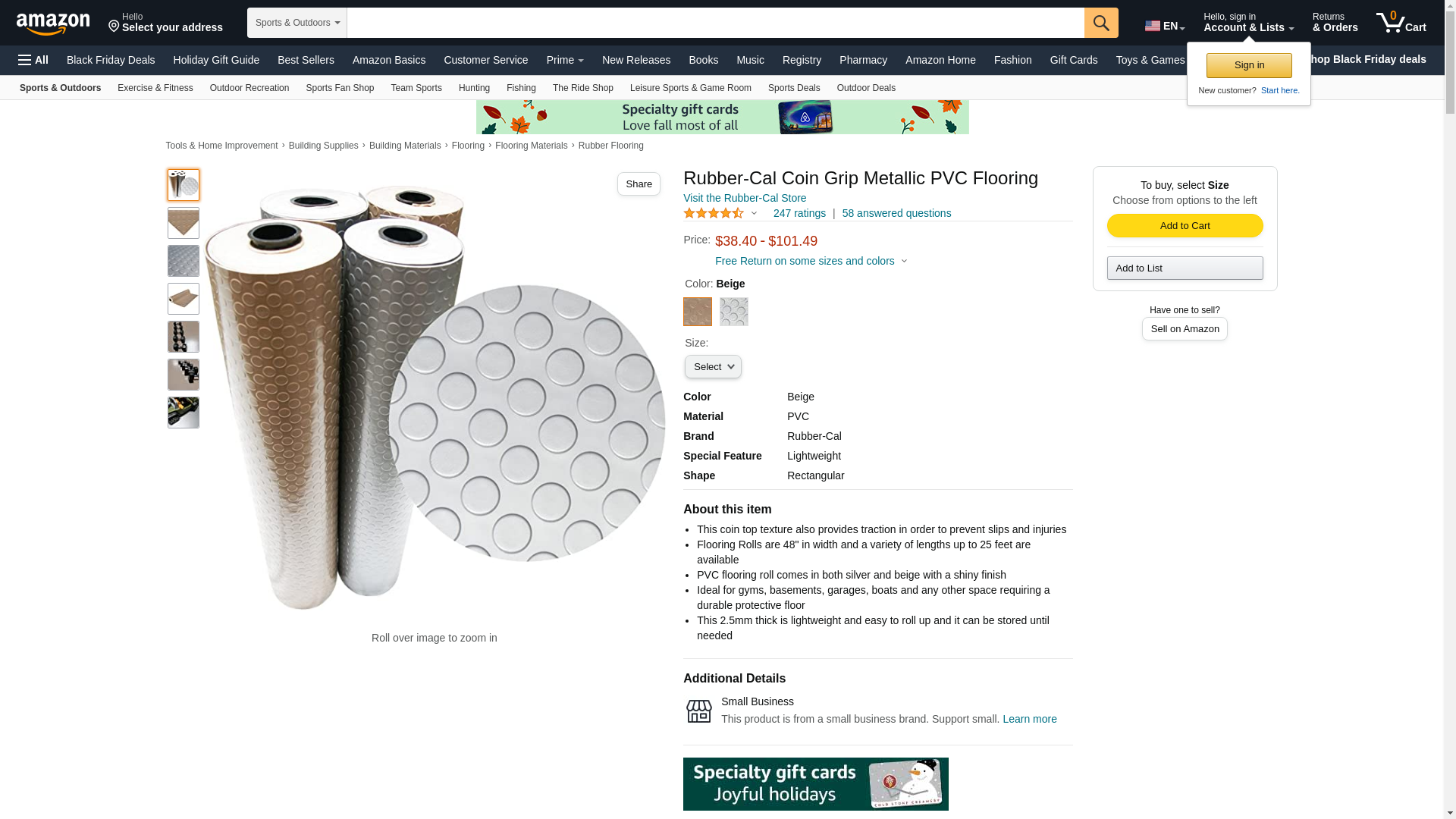 Rubber-Cal Coin Grip Metallic PVC Flooring, Beige, 2.5mm x 4' x 5'