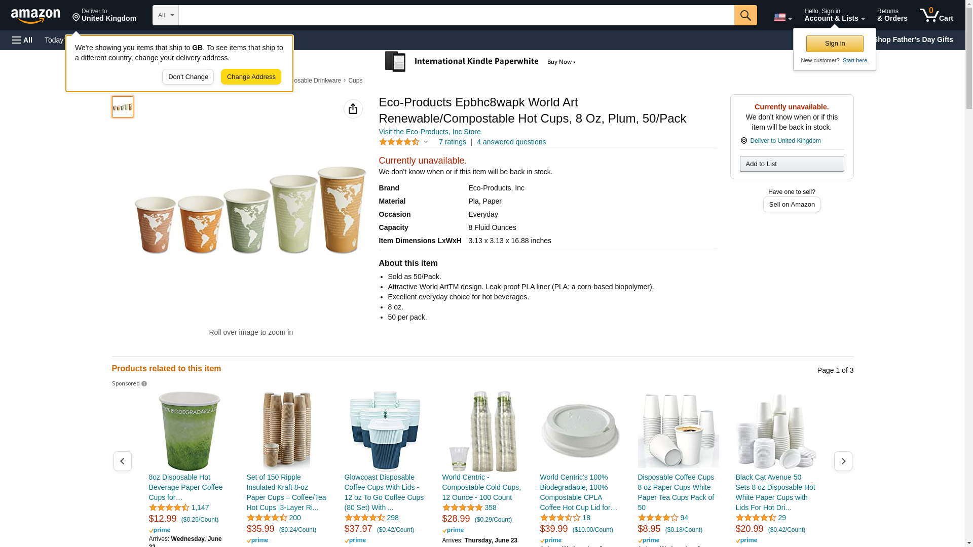 | Feature | "You've got the whole wide world in your hands Our World Art Hot cup is both renewable and compostable" |