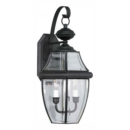 Forte Lighting 1301-02-04 Traditional 2-Light Exterior Wall Lantern, Black Finish with Clear Beveled Glass