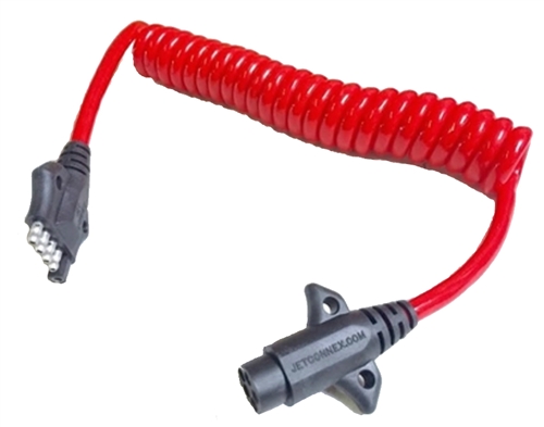 HitchCoil 95-12564-01 5-Way Round Female To 5-Way Flat Male Coiled Cable - 6 Ft - Red