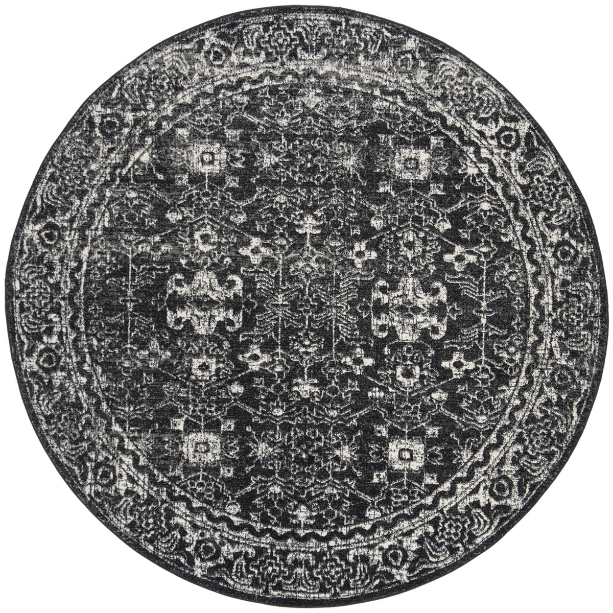 SAFAVIEH Evoke Collection Area Rug - 6'7" Round, Charcoal & Ivory, Shabby Chic Distressed Design, Non-Shedding & Easy Care, Ideal for High Traffic Areas in Living Room, Bedroom (EVK270K)
