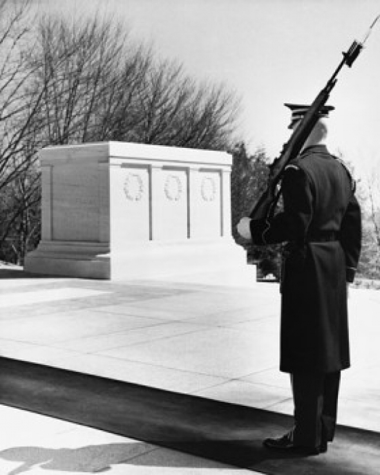- Rear view of an army soldier standing near a memorial Tomb of the Unknown Soldier Arlington National Cemetery Arlington Virginia USA