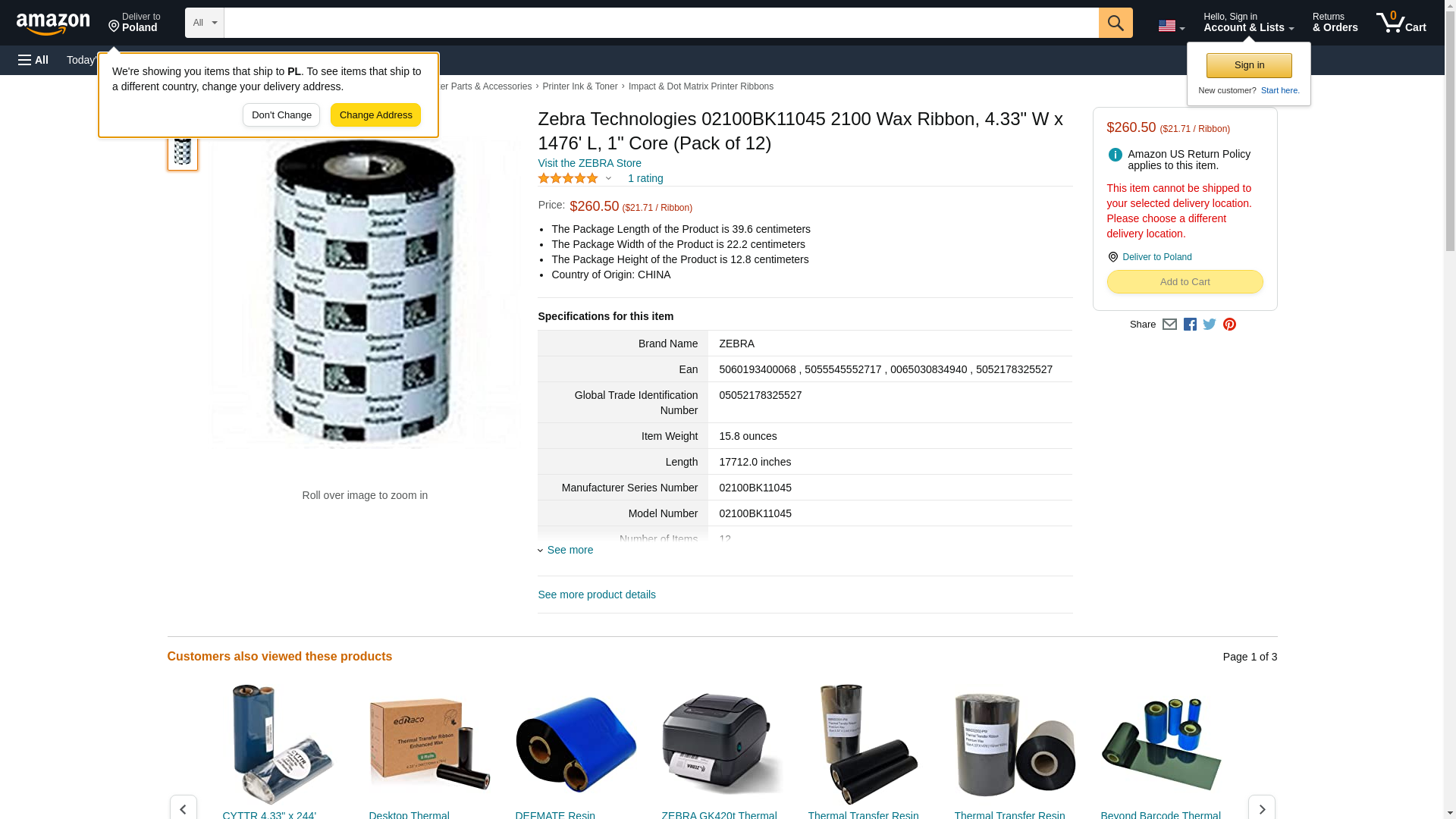 Zebra Technologies 02100BK11045 2100 Standard Wax Ribbon Case 433 inches x 1476 feet 12 rolls per inner case - Call for single roll availability