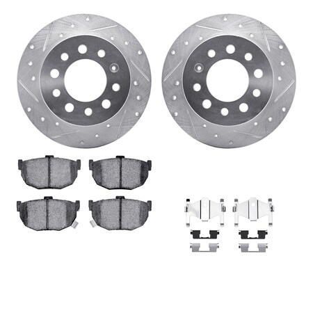 Dynamic Friction Company Rear Brake Rotors-Drilled and Slotted-Silver with 5000 Advanced Brake Pads includes Hardware 7512-03025