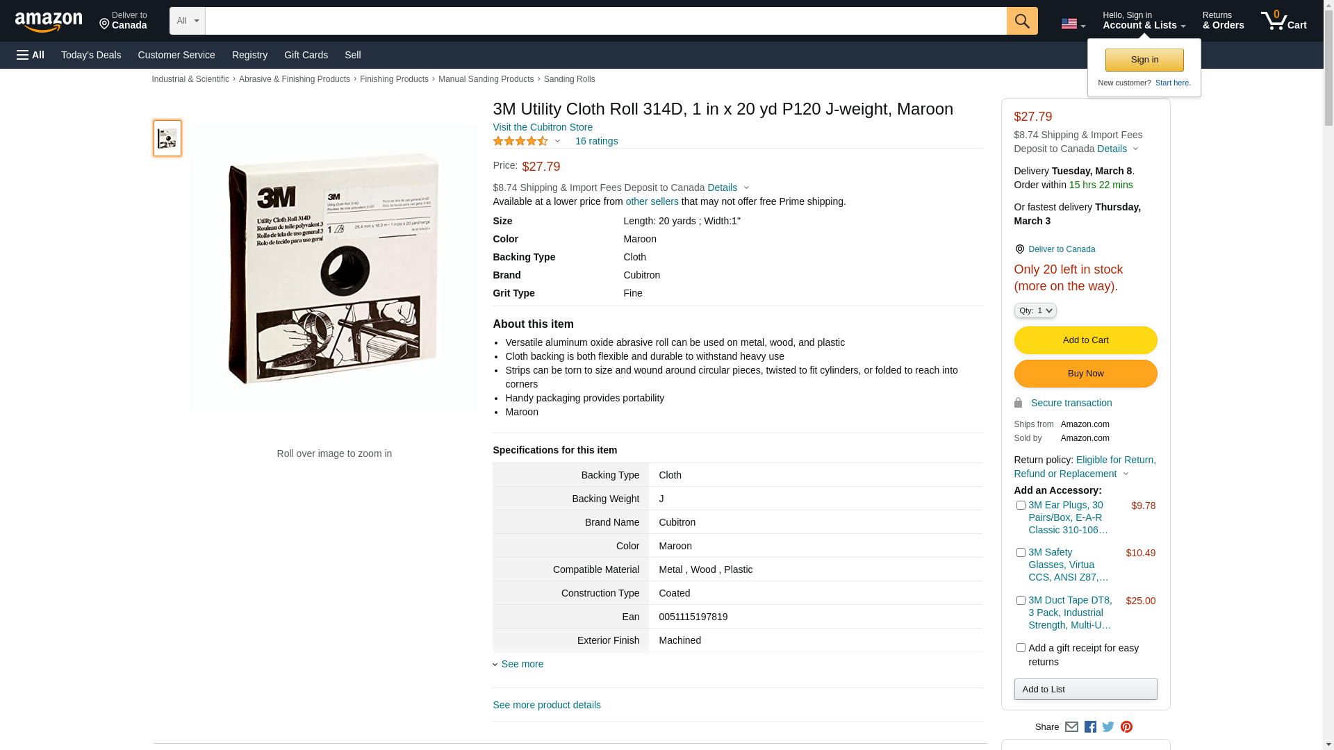 3M Utility Cloth Roll 314D, Aluminum Oxide, 1" Width x 20 yds Length, P120 Grit, Maroon (Pack of 1). Versatile alumin...