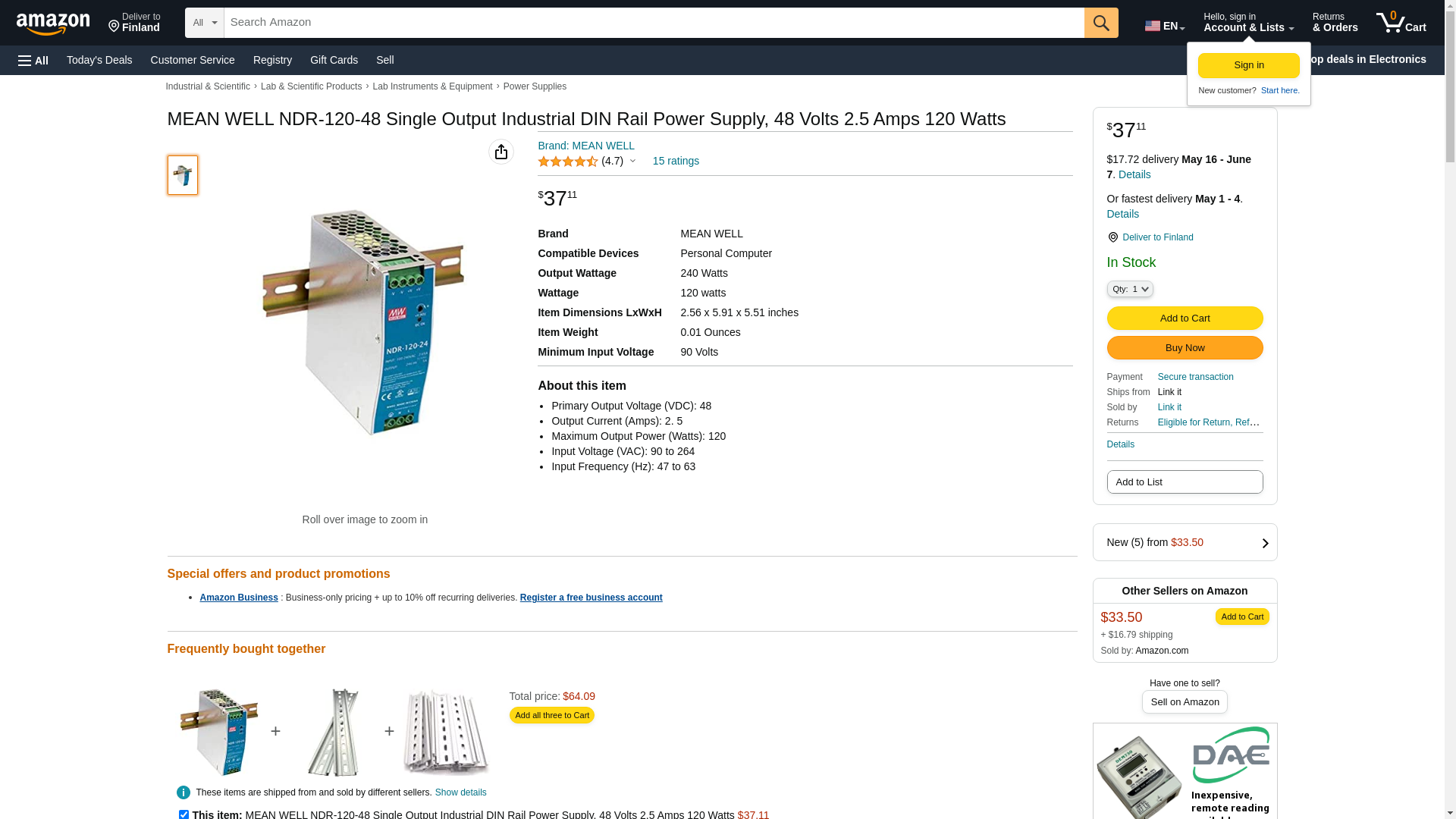 | NDR-120-48 | 1 | 178 | 1 | 1 @ $36.63, 5 @ $34.88, 10 @ $33.25, 20 @ $32.38 | |