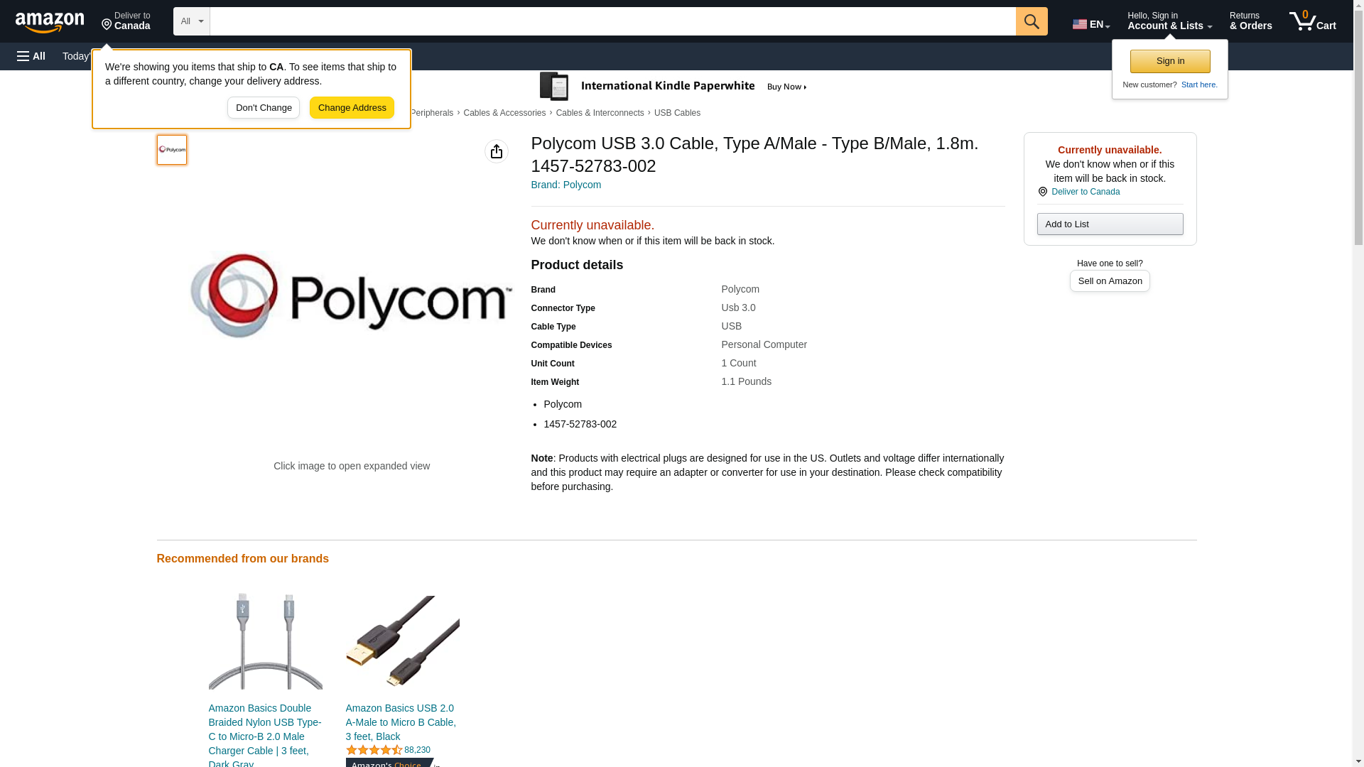 Polycom USB 3.0 Cable, Type A/Male - Type B/Male, 1.8m. 1457-52783-002
