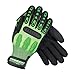 Maximum Safety TuffMax3 Gloves Maximum Safety 120-5130 Gloves are ideal for petrochemical, construction, auto repair, demolition, manufacturing and fabrication. Features: High performance polyethylene (HPPE) fiber shell is light-weight and provides excellent dexterity, tactile sensitivity and cut resistance MicroSurface nitrile-coated padded palm for enhanced wet and dry grip Hi-vis lime green liner Thermo plastic rubber (TPR) molded finger, thumb and back-of-the-hand guards for maximum protection Extended wrist Velcro closure for easy on/off and a secure fit Performance Properties Ratings: Abrasion: 4 Cut: 3 Tear: 4 Puncture: 4