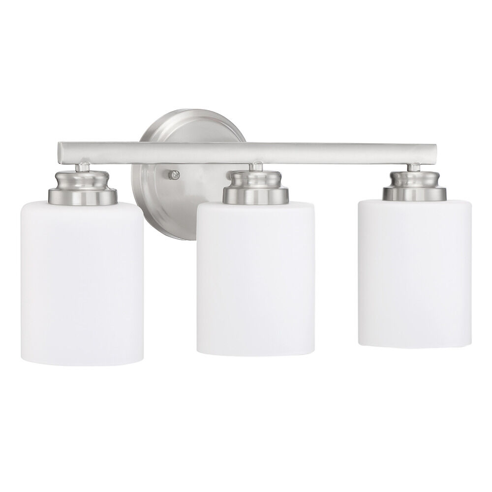 Craftmade 50503-BNK-WG Bolden White Frost Glass Vanity Bath Lighting, 3-Light 300 Watts, Brushed Polished Nickel