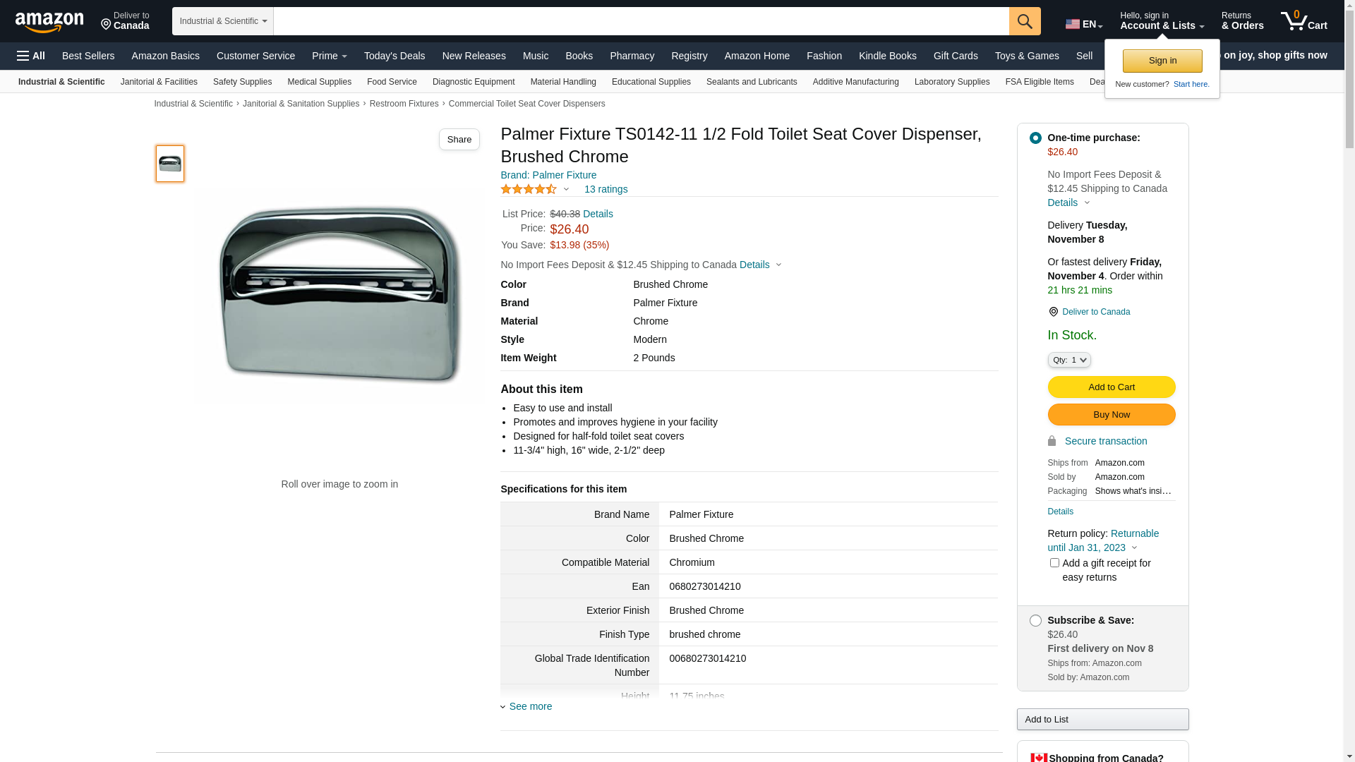 Palmer Fixture TS0142-11 1/2 Fold Toilet Seat Cover Dispenser, Brushed Chrome