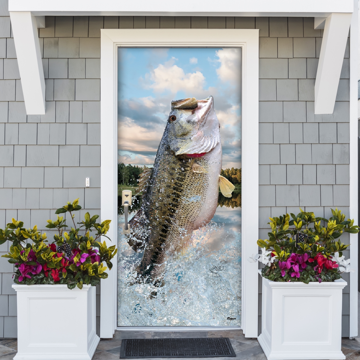 My Door Decor 285906NATR-004 36 x 80 in. Bass Jumping Nature Front Door Mural Sign Banner Decor, Multi Color