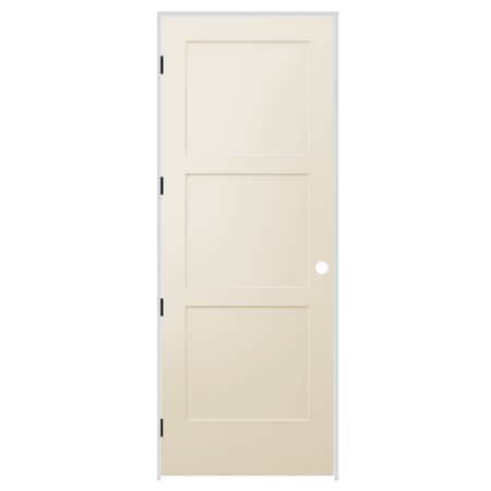 34" x 96" x 1-3/8" Primed 3-Panel Birkdale Molded Hollow Core 7-1/4" RH Prehung Door w/Mtt Blk Hngs