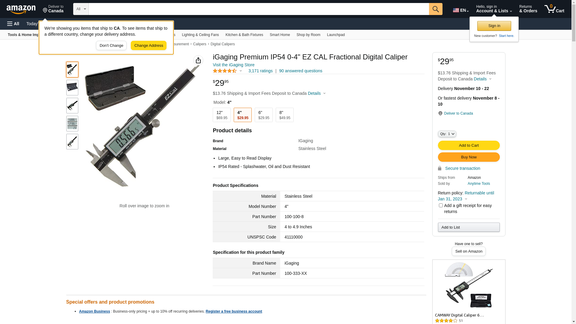 iGaging Premium IP54 0-4" EZ CAL Fractional Digital Caliper