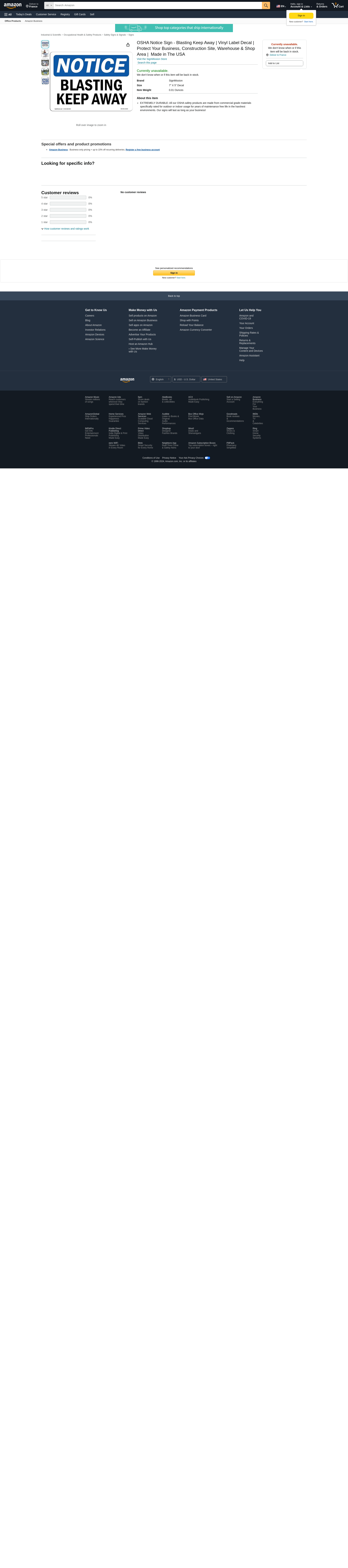 OSHA Notice Sign - Blasting Keep Away | Vinyl Label Decal | Protect Your Business, Construction Site, Warehouse & Shop Area | Made in The USA