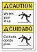 SmartSign "Caution: Watch Your Step", Bilingual with Graphic, Vinyl Label, 7" x 5". 4 mil thick vinyl with clear lami...