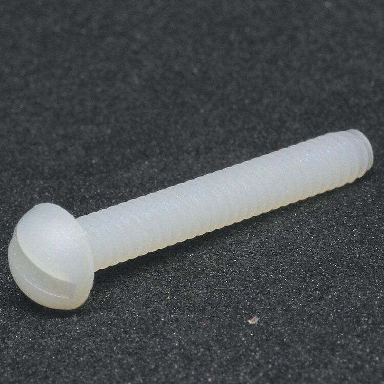 Machine Screw, Head Type Round, Material Nylon, Finish Plain, Drive Slotted, Thread Size #2-56, Fastener Length 1 in, Head Width 0.063 in, Head Height 0.156 in, Tensile Strength 19 psi, Pack Size Small, Minimum Thread Length 1 in, Type Standard Machine Screw, Washer Outside Diameter Not Applicable, Washer Thickness Not Applicable, Maximum Head Width 0.063 in, Minimum Head Width 0.064 in, Maximum Head Height 0.156 in, Minimum Head Height 0.154 in, System of Measurement Inch