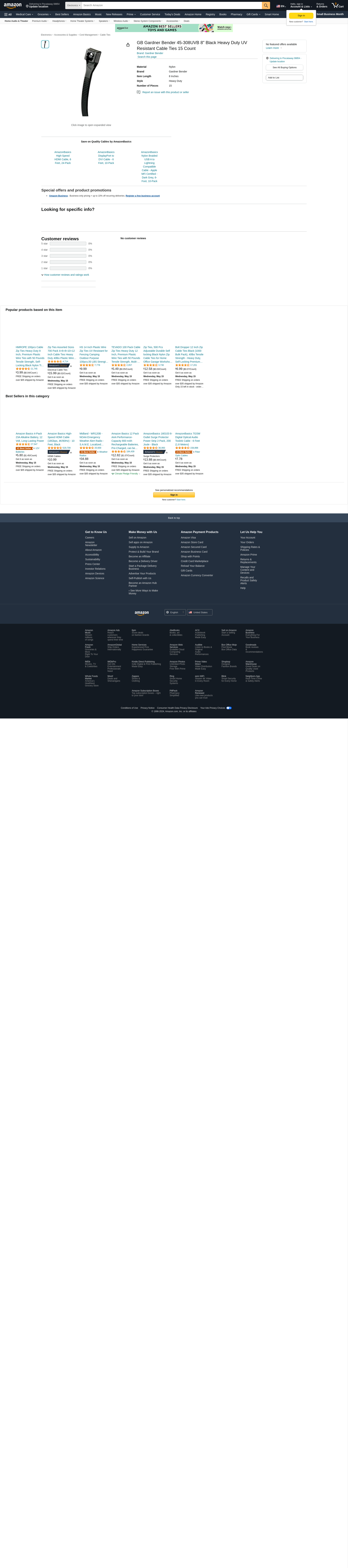 Gardner Bender 45-308UVB Cable Ties, 8 Inch, 75 lb tensile, Electrical Wire and Cord Management, Nylon Zip Tie, 15 pk, UV Resistant Black