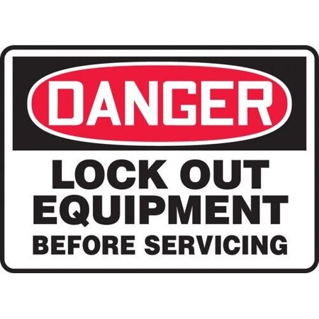 Accuform MLKT014XT Legend "Danger Lock Out Equipment Before Servicing" Sign, 10" Height, 14" Wide, 10" Length, 0.060" Thickness, Dura-Plastic, Red/Black on White