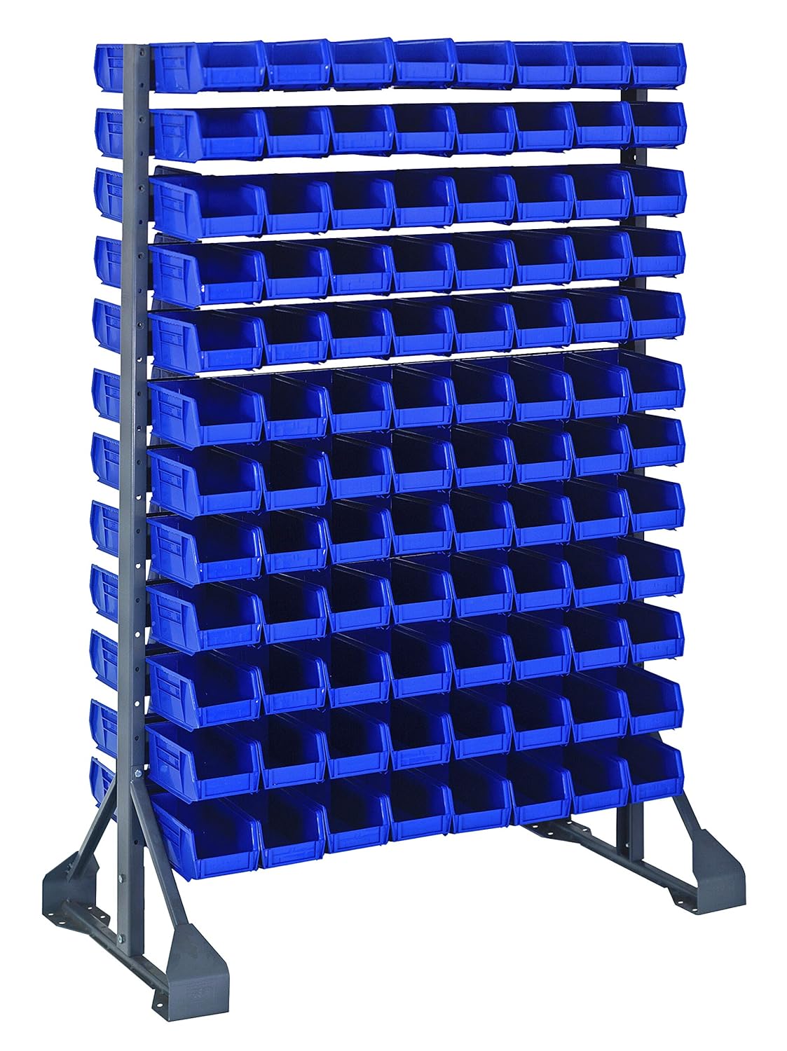 Double Sided Rail Systems ? Complete Packages 36?L x 20?W x 53?H offers 1, 600 lb. capacity. Available in 4 different configurations. Mobilize double sided system with the addition of QRU-MOB. Bins are available in blue, yellow, red, green, ivory, black and clear.