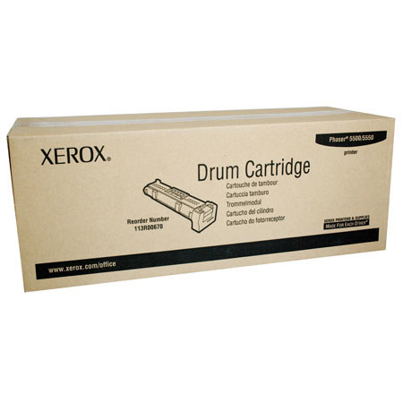 Xerox Drum, 113R00670, Black, 60,000 pg yield - The Xerox Phaser 5500 drum cartridge yields up to 60,000 high-quality pages. Because the drum cartridge is a separate unit from the toner cartridge, both cartridges may be used up completely, enabling overall supplies savings and less waste of unused portions. And, when you are finished with the drum cartridge, Xerox will recycle it for free through our Green World Alliance supplies recycling program. Xerox cartridges are easy to replace and are designed to interact perfectly with other Xerox supplies, ensuring superior print quality and reliability-leaving more time for carefree, unattended printing.