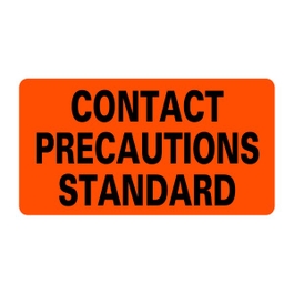 CONTACT PRECAUTIONS STANDARD Infection Control Labels help prevent and eliminate the risk of exposure in a hospital or doctor's office by reminding staff to take the standard contact precautions. This medical label is made with aggressive permanent adhesive with a service temperature ranging from -65 to 220 Fahrenheit. Place Infection Control Medical Labels on specimens, files, charts or records without loss of adhesion or print quality. CONTACT PRECAUTIONS STANDARD Infection Control Medical Labels 500 Labels Per roll 2 x 1 1" Core Aggressive permanent adhesive Adhesive temperature range of -65 to 220 Fahrenheit