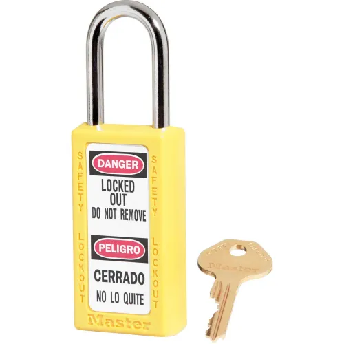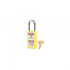| Feature | Price For: Each Key Type: Alike Shackle Dia.: 1/4" Shackle Height: 1-1/2" Shackle Width: 25/32" Shackle Type: Open Green Certification or Other Recognition: UL Environment Claims Validation Body Material: Thermoplastic Number of Keys: 2 Item: Lockout Padlock Body Width: 1-1/2" Shackle Material: Hardened Steel Body Height: 3" Body Color: Yellow |