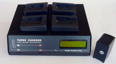 The Dolgin Engineering TC-400 4-Position Charger for EOS REBEL T2i, T3i, T4i is a 4-position microprocessor-based battery charger. It provides fast, safe simultaneous charging of 7.2V LP-E8 batteries. This unit features a Digital LCD display indicating the battery pack charge in progress status and true capacity upon charge completion. Simultaneous Charging: This charger offers safe simultaneous charging. All four batteries are ready in about 2.5 - 3 hours. Worldwide Charging: A Worldwide 100-240 VAC Power supply works in most locations. With an optional cable (not included), 12V DC car power can be utilized when AC power is not available.</p>
