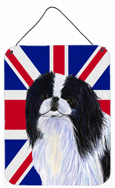 Carolines Treasures SS4909DS1216 Japanese Chin With English Union Jack British Flag Aluminum Metal Wall Or Door Hanging