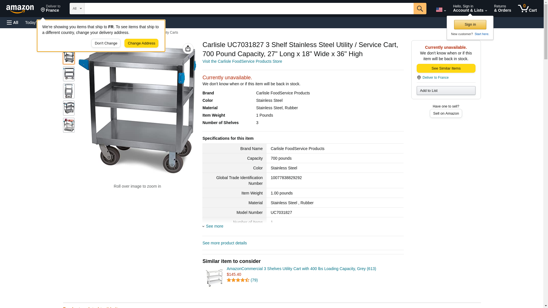 | Feature | Carlisle UC7031827 Utility Cart - 700-lb Capacity, 27x18x36 (3)Shelves, Stainless |