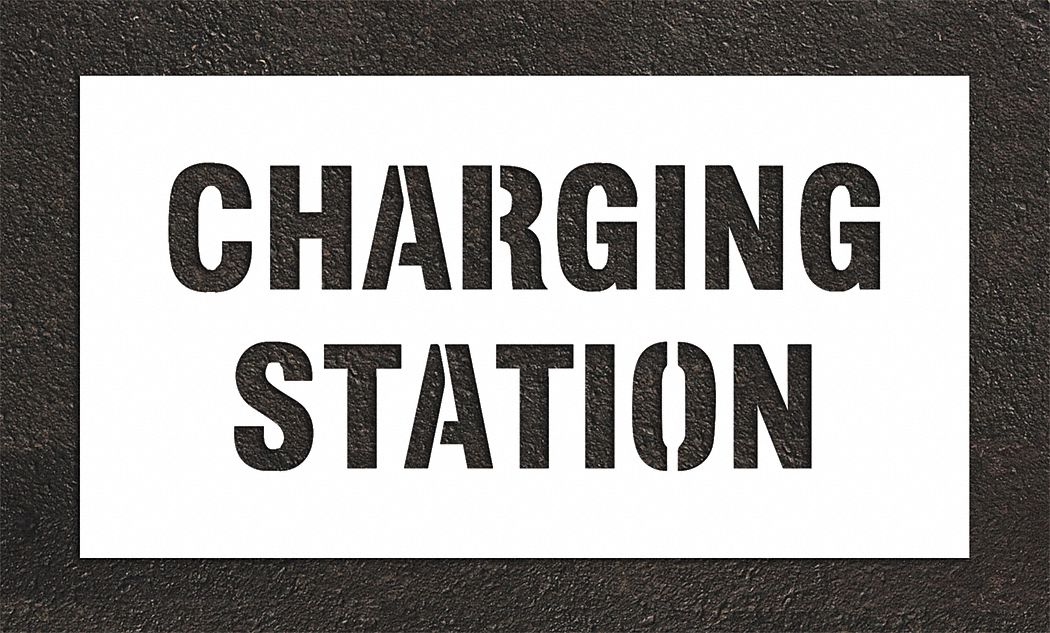 Pavement Stencil, Character Height 14 In., Character Width 32 In., Material Polyethylene, Thickness 0.063 In., Overall Height 40 In., Overall Width 22 In., Self-Adhesive No, Magnetic/Nonmagnetic Nonmagnetic, Reusable Yes, Number of Pieces 1, Color White, Stencil Type Message, Stencil Application Parking Lot, Stencil Character Electric Car Logo, Interlocking No, Duty Light, Font Highway Gothic