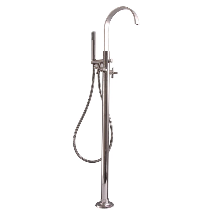 BARCLAY 7954-MC-PN DIXVILLE 49 1/4 INCH SINGLE HOLE FREESTANDING TUB FILLER WITH HAND SHOWER, POLISHED NICKEL, CROSS...