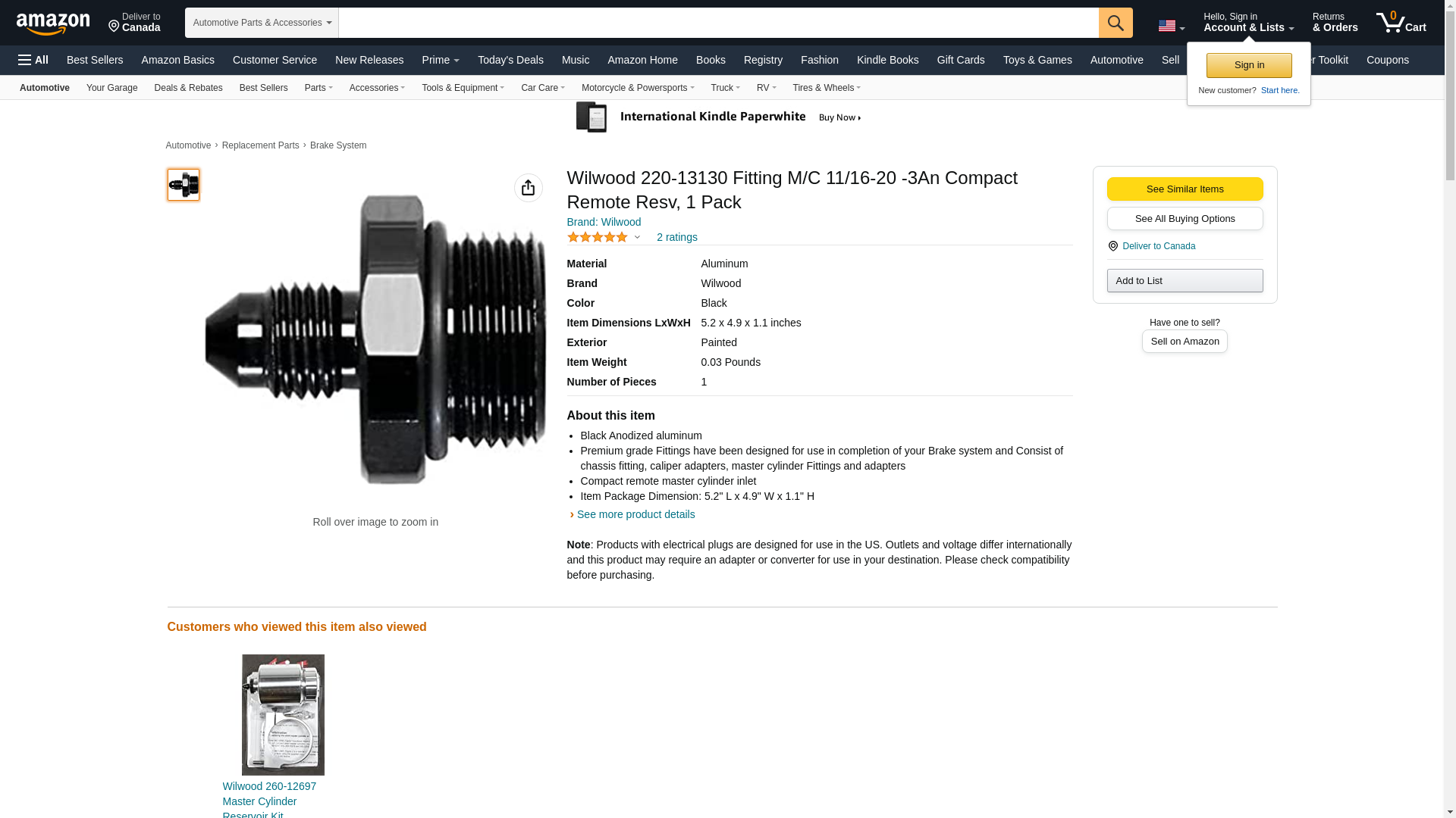 Wilwood 220-13130 Fitting M/C 11/16-20 -3An Compact Remote Resv, 1 Pack