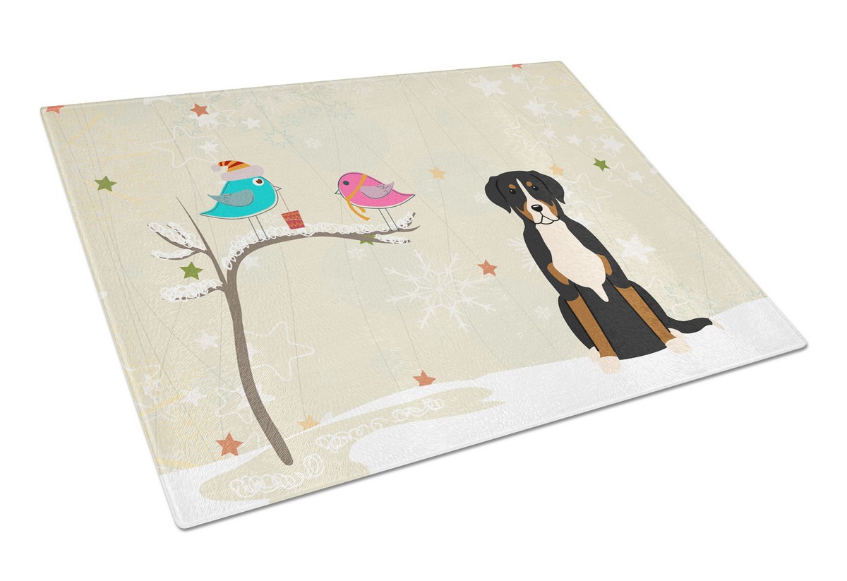 Caroline's Treasures BB2509LCB Christmas Presents between Friends Greater Swiss Mountain Dog Glass Cutting Board Large Decorative Tempered Glass Kitchen Cutting and Serving Board Large Size Chopping B