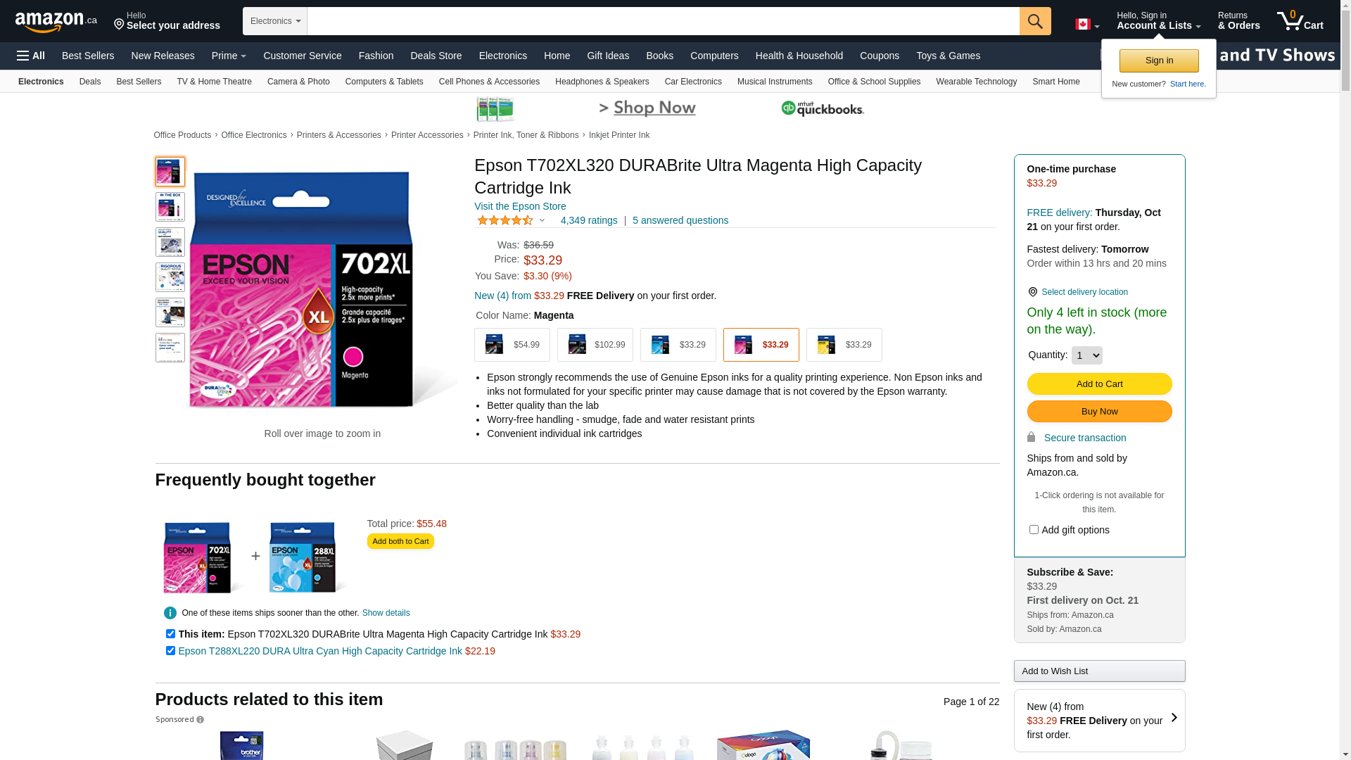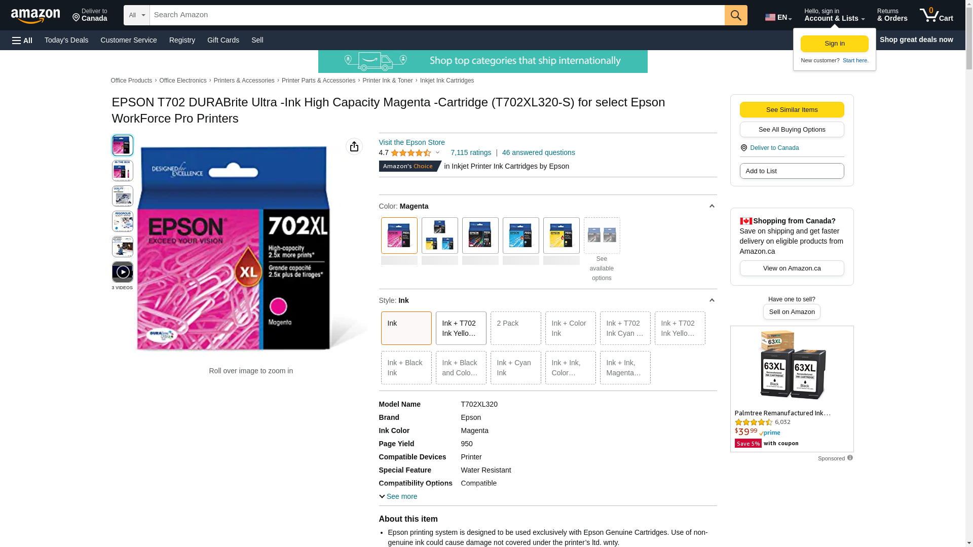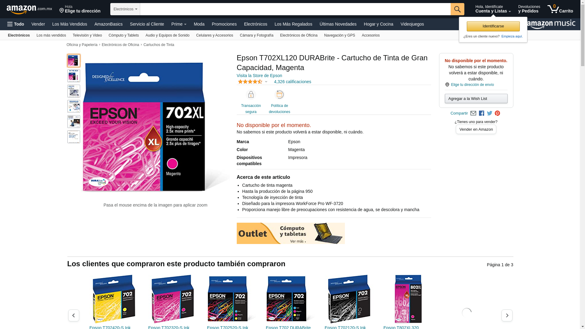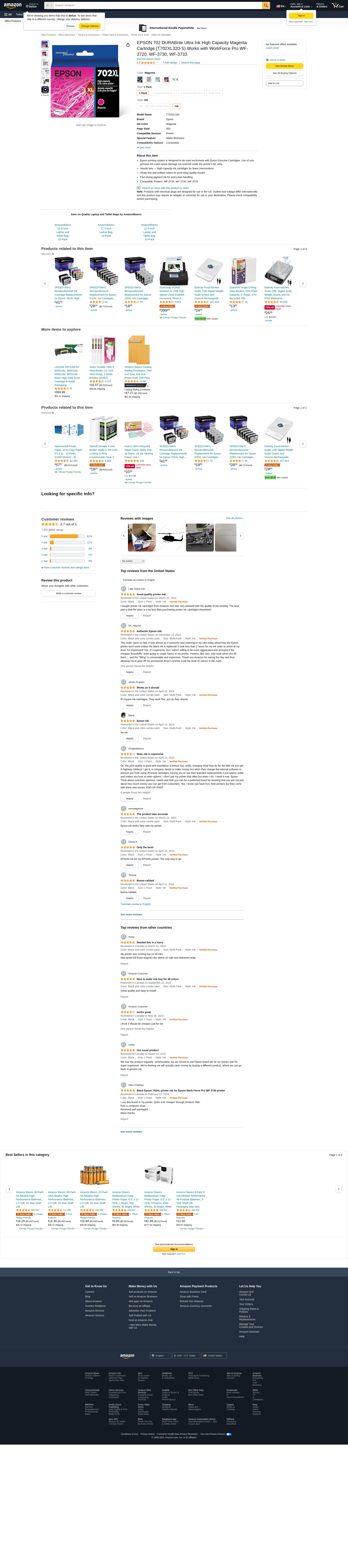EPSON 702 DURABrite Ultra Ink High Capacity Magenta Cartridge (T702XL320-S) Works with WorkForce Pro WF-3720, WF-3730, WF-3733