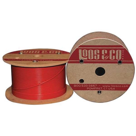 Loos Galvanized Steel Nylon Coated Wire Rope, 7x19 Strand Core, Red, 3/16" Bare OD, 5/16" Coated OD, 250\' Length, 4200 lbs Breaking Strength