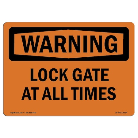 OSHA WARNING Sign, Lock Gate At All Times, 24in X 18in Aluminum