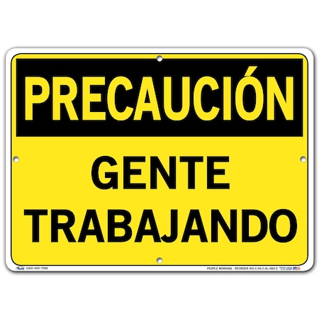 Vestil Caution Sign SI-C-06-C-AL-080-S Aluminum .080" overall size 14.5"W x 10.5"H PEOPLE WORKING, GENTE TRABAJANDO