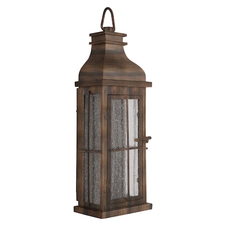 - DETAILS: Constructed of Cast Aluminum with Weathered Copper Finish and Clear seeded Glass Shade