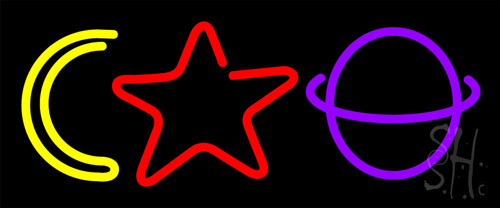 The Sign Store N105-20236 10 x 24 in. Moon Star Planet Neon Sign - Purple, Red & Yellow