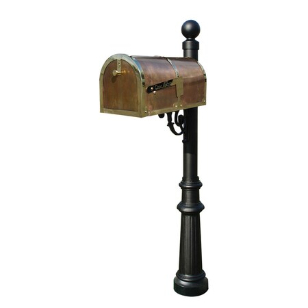 Brass Mailbox,w/decorative Post, Fluted base,#4 Ball finial, Black