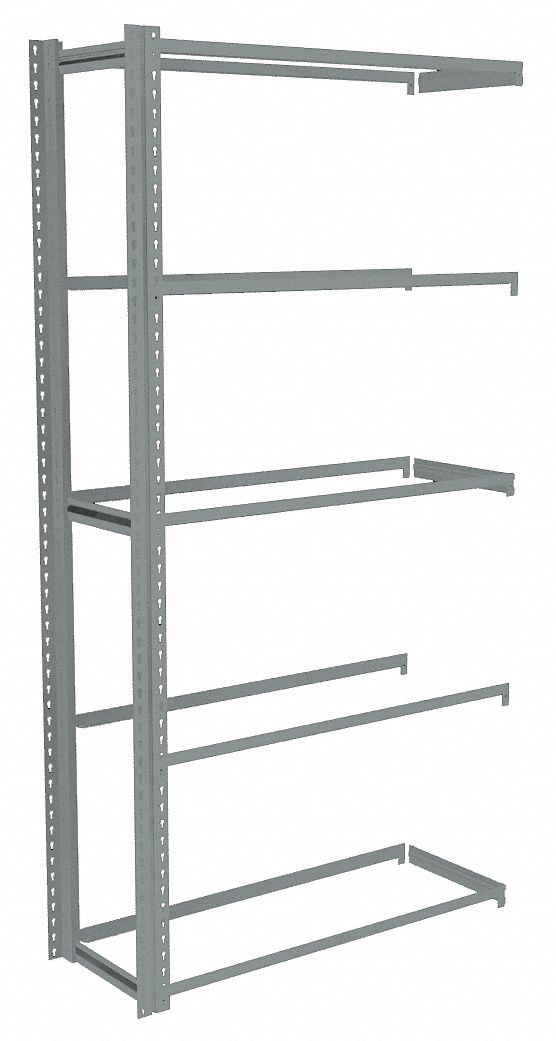 <p>Boltless Shelving, Shelf Configuration Single Straight, Width 43 In., Depth 15-5/8 In., Height 84 In., Number of Shelves 5, Material Steel, Beam Capacity 800 lb., Shelf Capacity 800 lb., Decking Material None, Color Gray, Finish Electro Coat, Shelf Adjustments 1-1/2 In., Includes (2) Posts and (10) Beams</p><p><b>Specifications: </b><ul><li>Green Certification or Other Recognition: SCS Indoor Advantage Certified</li><li>Beam Capacity: 800 lb.</li><li>Width: 43"</li><li>Finish: Electro Coat</li><li>Material: Steel</li><li>Number of Shelves: 5</li><li>Shelf Capacity: 800 lb.</li><li>Color: Gray</li><li>Decking Material: None</li><li>Shelf Style: Single Straight</li><li>Shelf Adjustments: 1-1/2"</li><li>Item: Boltless Shelving</li><li>Green Environmental Attribute: Minimum 30% Post-Consumer Recycled Content</li><li>Includes: (2) Posts and (10) Beams</li><li>Depth: 15-5/8"</li><li>Height: 84"</li></ul></p>