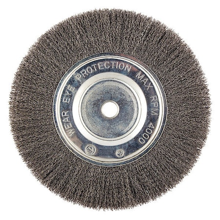 Wire Wheel Brush, Wire Wheel Brush, Bristle Type Crimped Wire, Brush Dia. 10 in, Mounting Type Arbor Hole, Arbor Hole Size 3/4 in, Abrasive Shank Size No Shank, Wire Dia. 0.014 in, Bristle Trim Length 2 in, Abrasive Material Carbon Steel, Face Width 3/4 in, Max. RPM 4,000 RPM, For Use With Bench Grinders, Pedestal Grinders, Right Angle Grinders