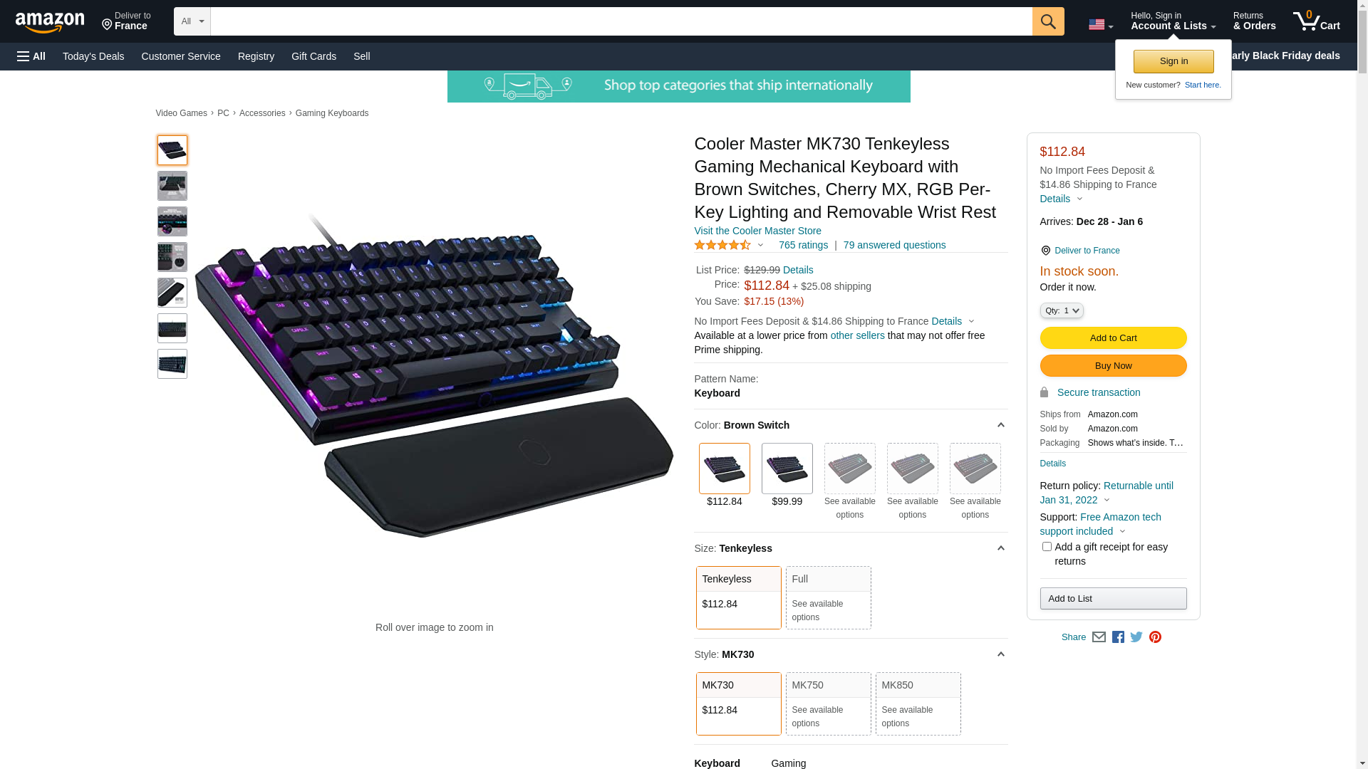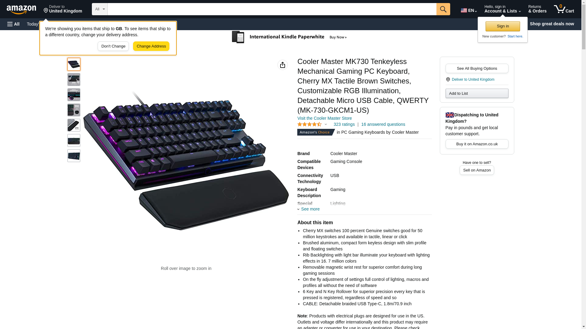 Cooler Master USB MK730 Tenkeyless Gaming Mechanical Keyboard with Brown Switches, Cherry MX, RGB Per-Key Lighting and Removable Wrist Rest