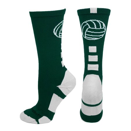 MadSportsStuff Volleyball Logo Crew Socks (Dark Green/White, Small)