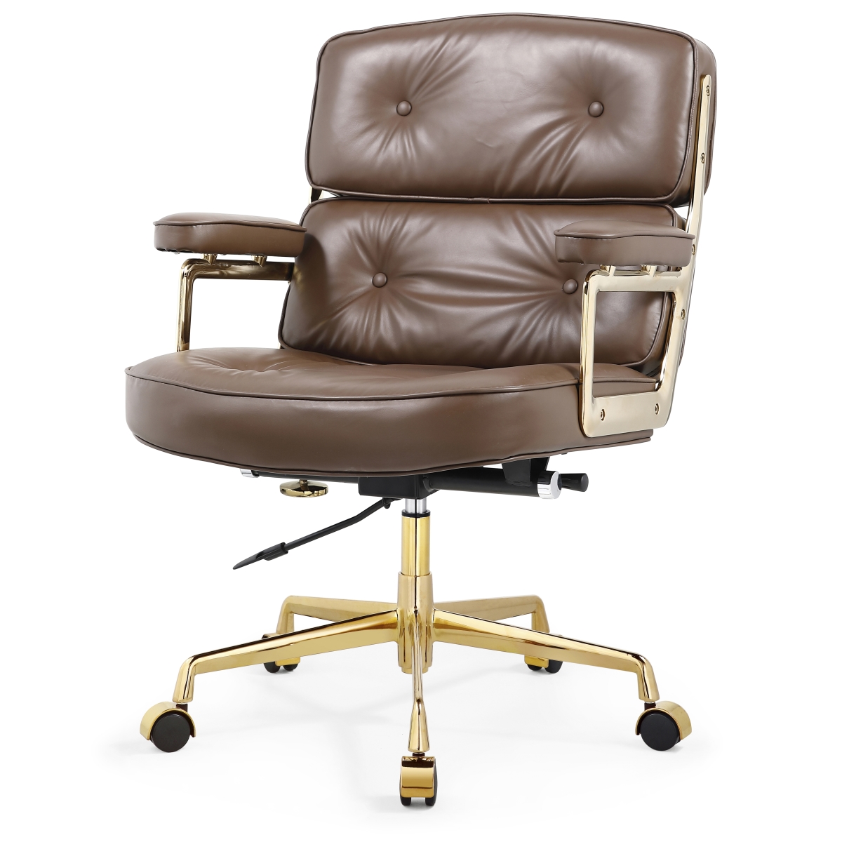 Meelano 310-GD-DBR M310 Office Chair in Aniline Leather - Gold & Saddle Brown