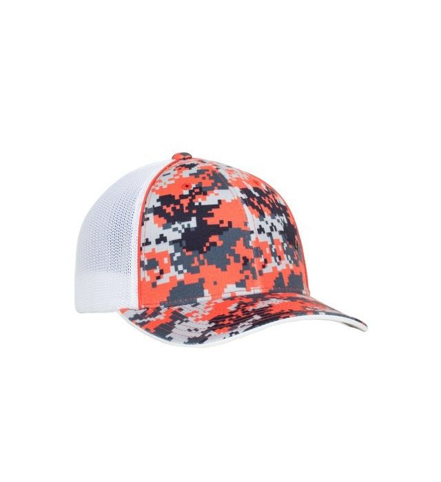 Pacific Headwear 408M.R75.S-M Digital Camo Trucker Flexfit Cap, Orange & White - Small & Medium
