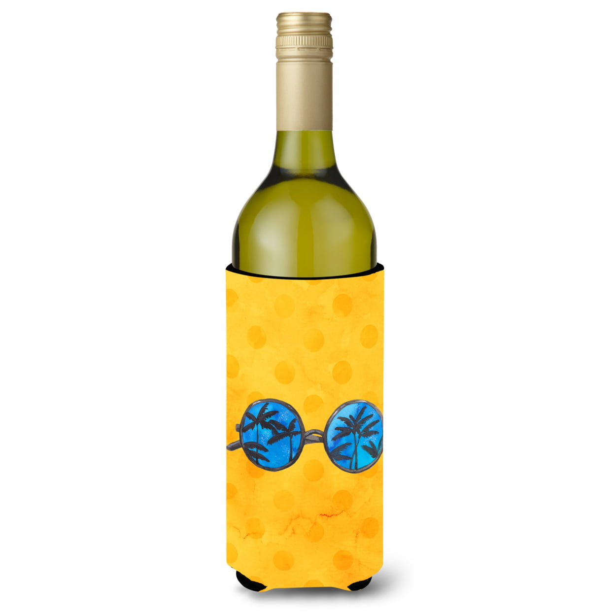 Carolines Treasures BB8177LITERK Sunglasses Yellow Polkadot Wine Bottle Beverge Insulator Hugger
